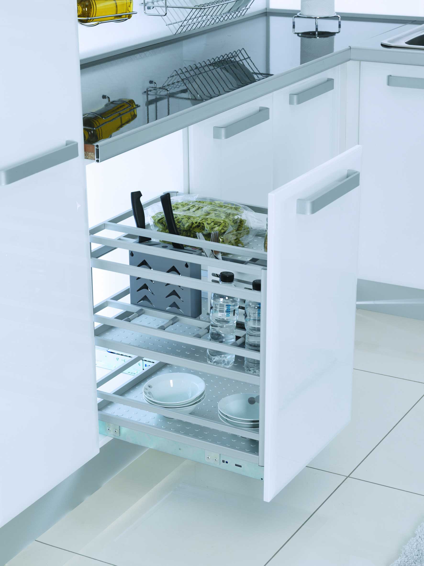 • Üst sepete bağlanan bölmeler bıçak, kaşık vb. gereçlerin düzenli saklanmasını sağlar.