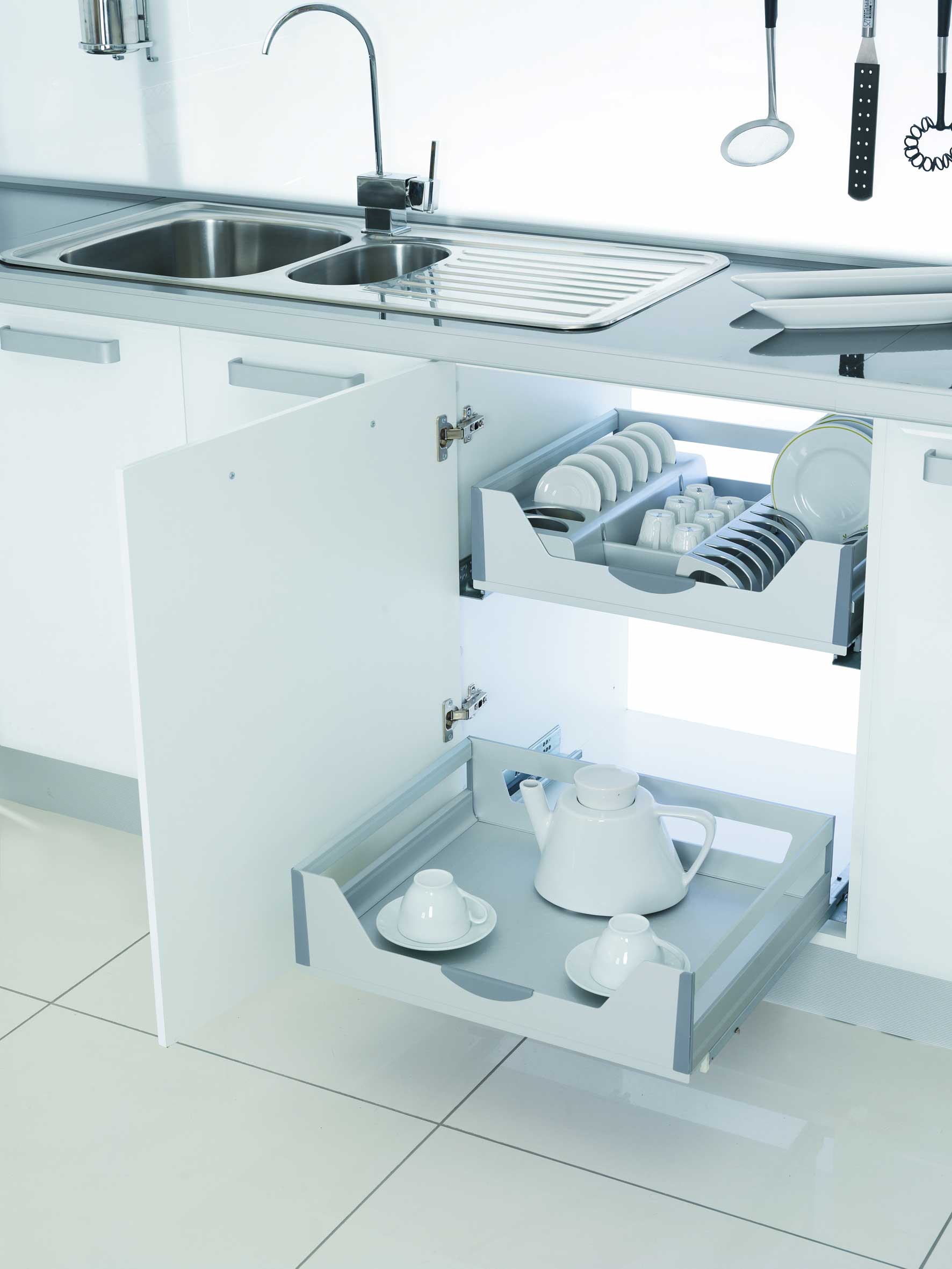 • Sepet içindeki fonksiyonel bölmeler mutfak gereçlerinin düzenli saklanmasını sağlar.